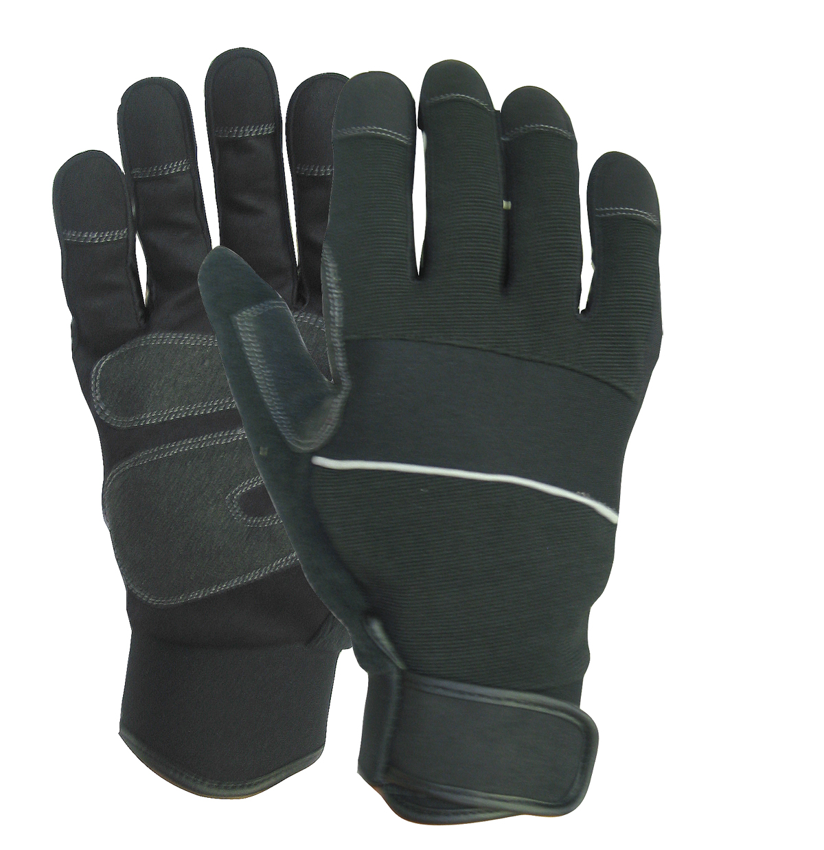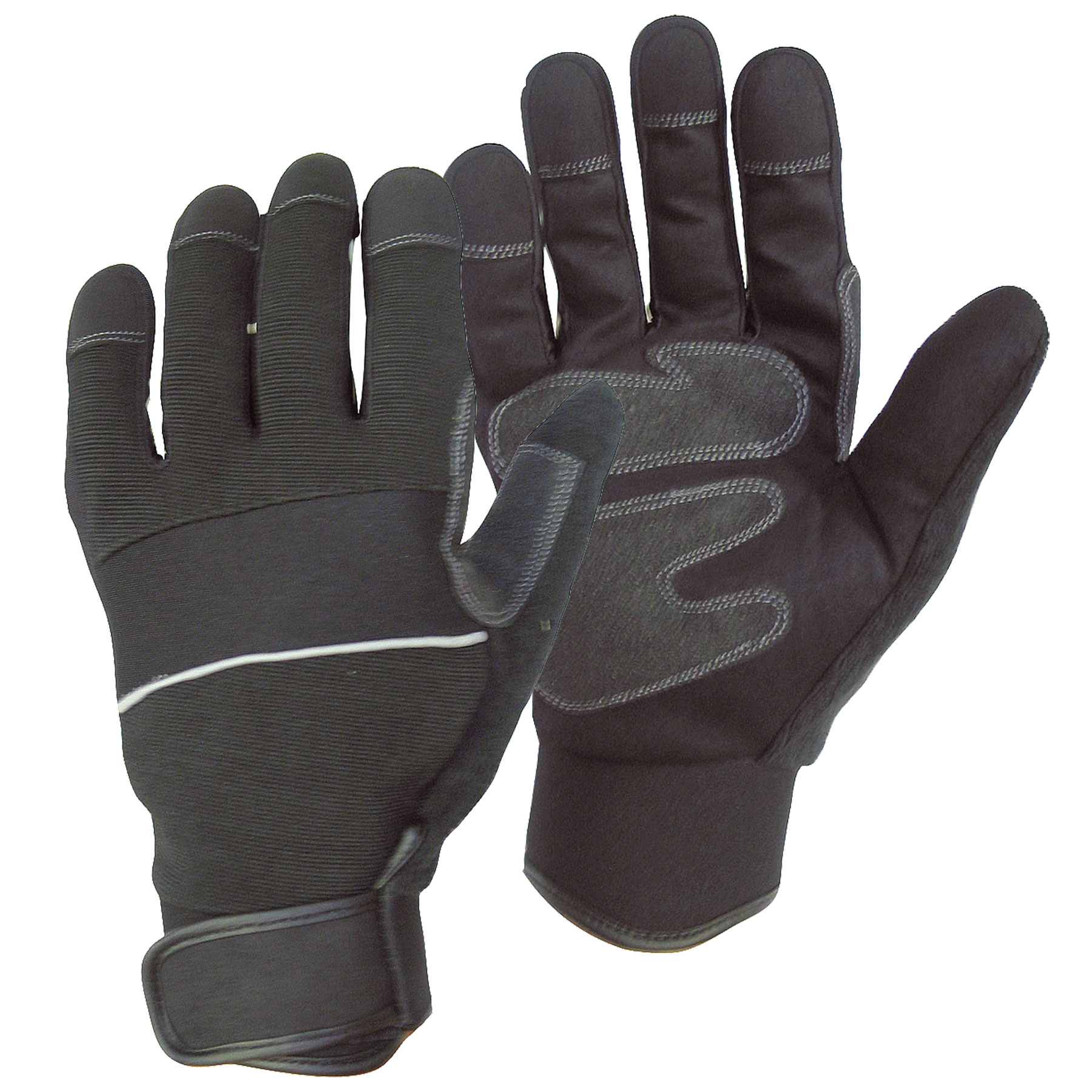 Für extra Sicherheit und Griffsicherheit sind Fingerspitzen und Handfläche mit einer rutschfesten Verstärkung ausgestattet – ideal für präzise Arbeiten und sicheres Handling von Werkzeugen und Materialien. Der verstellbare Klettverschluss am Bund gewährleistet einen festen Sitz am Handgelenk.