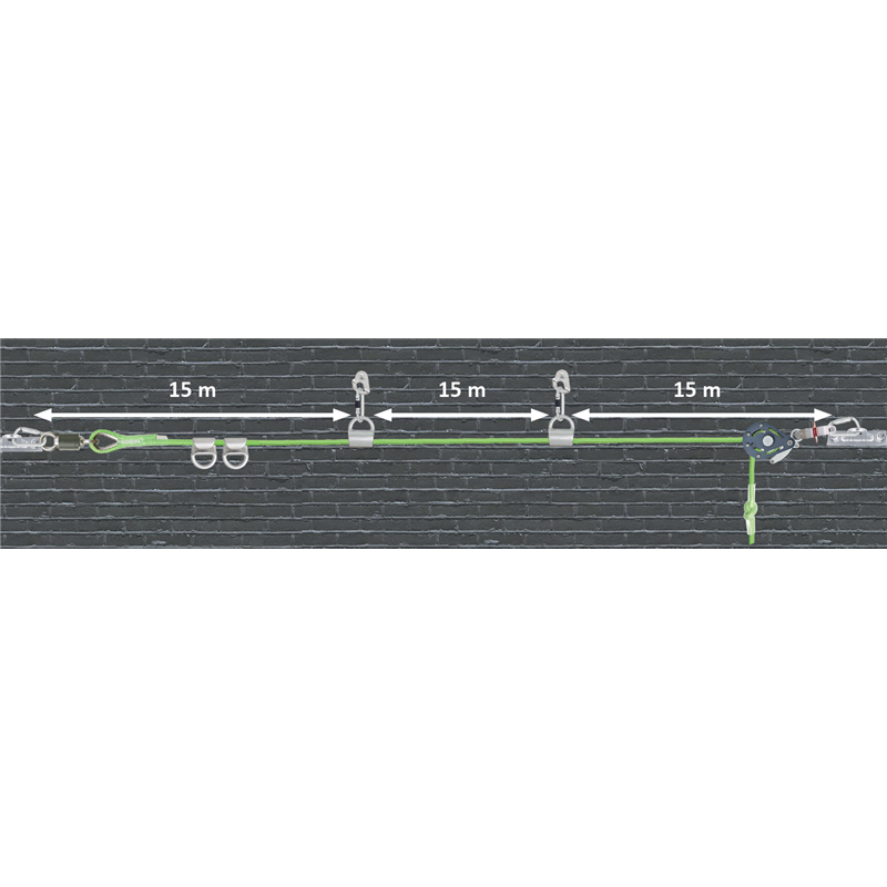 CROSS LINE 2, horizontale Seilsicherung 45 m, temporäre Lifeline, EN 795 Typ C, Auffangsystem 4 Personen, Seilgleiter, temporäre Absturzsicherung