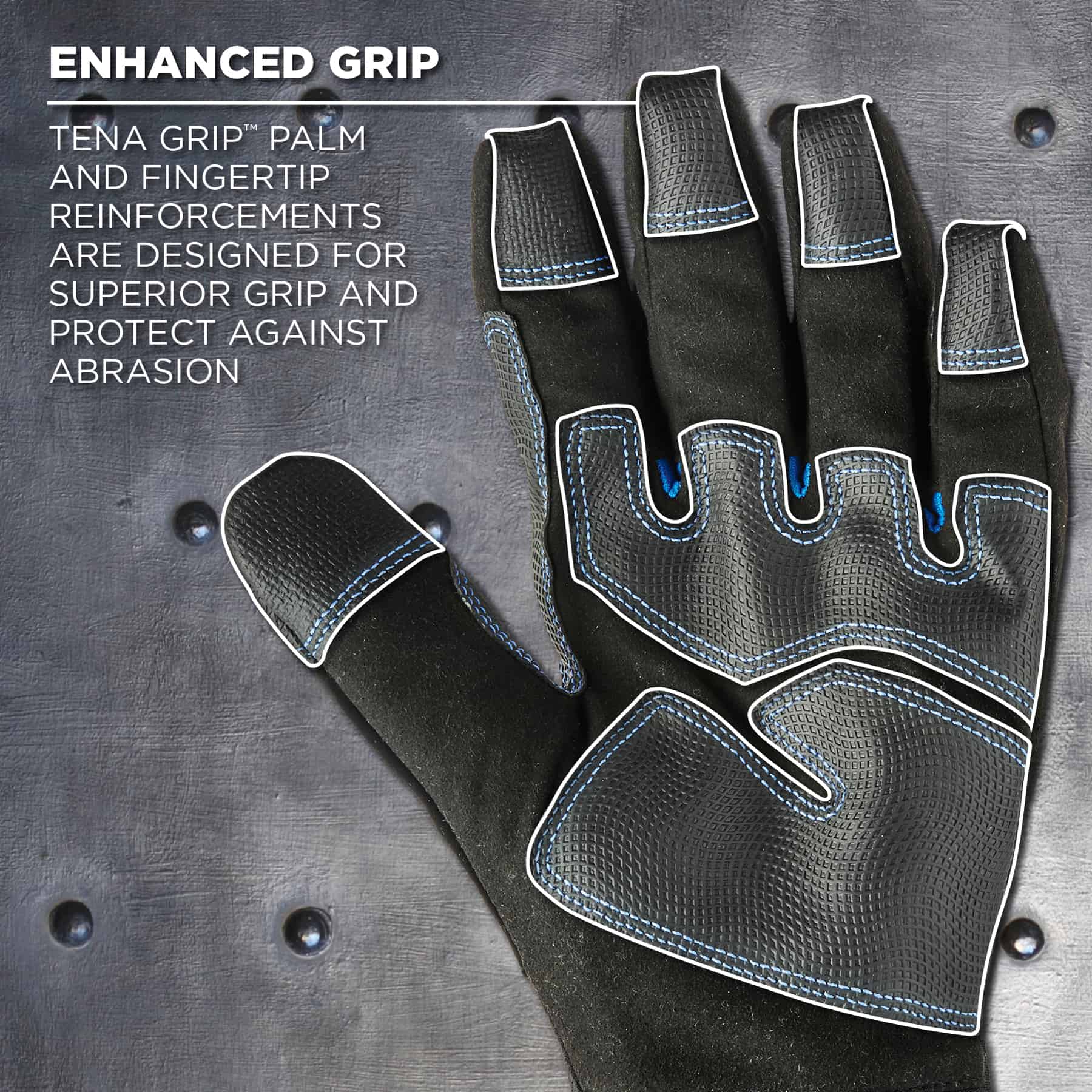 • Verstärkte Handflächen & Fingerspitzen – abriebfest, griffig & flexibel